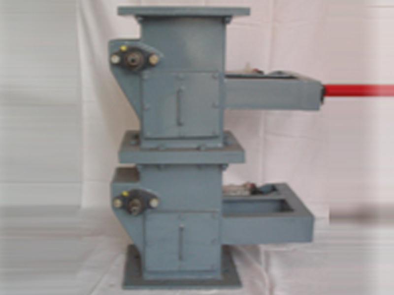 Double dump valves have two trap-door flap plates which open and close on an alternating cycle. The top gate opens to allow collected material to drop through onto the bottom gate. The top gate then re-closes to prevent air leakage above the valve. The bottom gate then opens to allow material to pass completely through the valve. The bottom gate then re-closes to prevent air leakage below the valve. This cycle is continuously repeated in order to maintain a steady discharge of material from the valve, while maintaining a positive seal on the system.