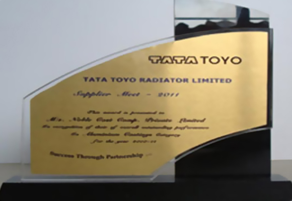 Award for Excellent Quality Performance in 2010 From TATA TOYO RADIATOR LTD