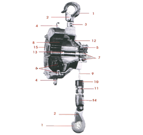 • Hanger for Secondary Support Chain - Upper and Lower Hangers are provided for attachment of secondary support chain to prevent the possibility of the balancer accidentally falling.