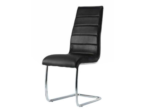 Elegantly defined Pluto Dining Chair has a bent wood structure in black PVC upholstery. It is comfortable seating with Slab