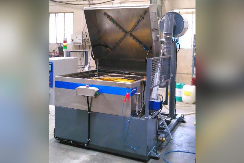 The Component is rotated by AC Geared Motor at a Slow Speed. For purging cycle, the compressed air is blown through the spray nozzles for few seconds. The compressed air is blown through separate air blow nozzles, when the abolition is over, for removing the excess solution droplets from the component surfaces. It facilitates the quick drying of the component.