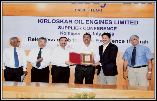 ‘Best Supplier Award’ for the ‘Most Improved Delivery Performance for Year 2008-09’ by Kirloskar Oil Engines Ltd.