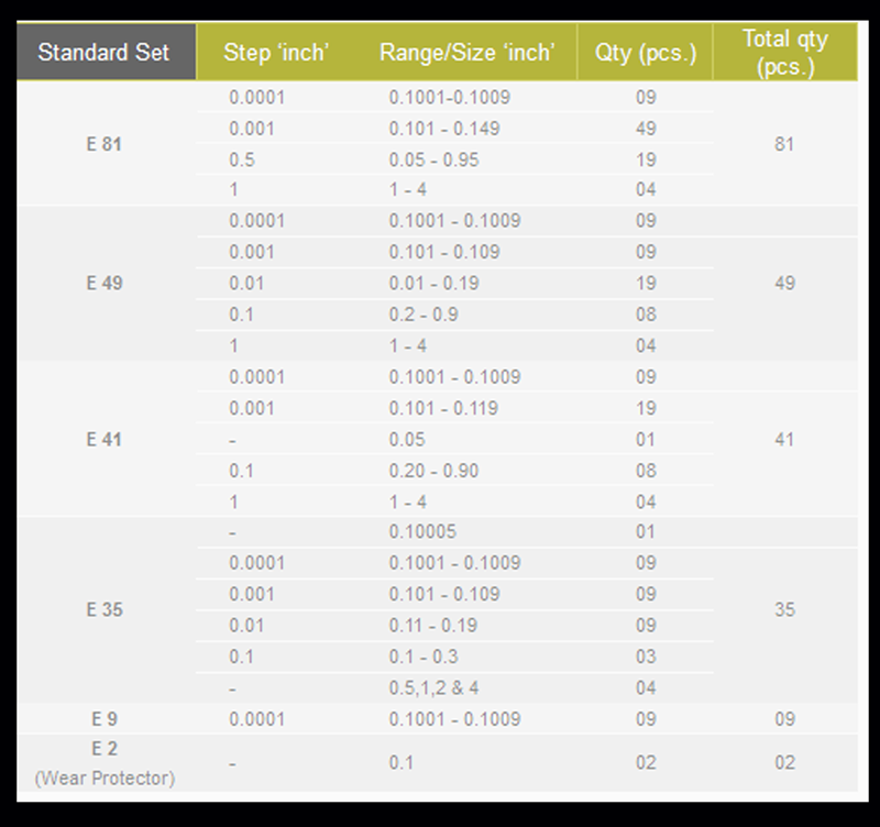 ¦ Standard Gauge Block Sets (Imperial)as per BS 4311