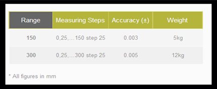 • Gauge blocks are built-in the rigid frame to provide measuring in 25mm step in