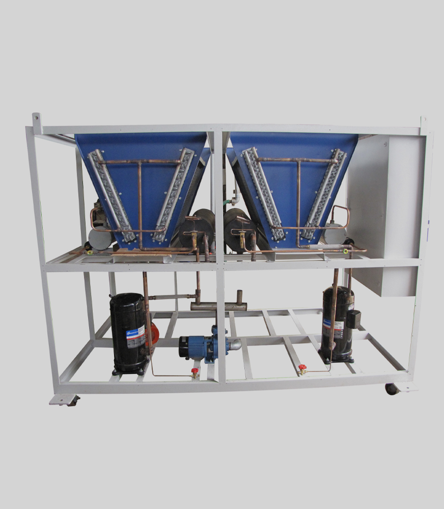 - These chillers are available Air Cooled & Water Cooled range. Ranging from 10 TR to 150 TR. However for 30 Ton and above chillers Water Cooled range is advised.