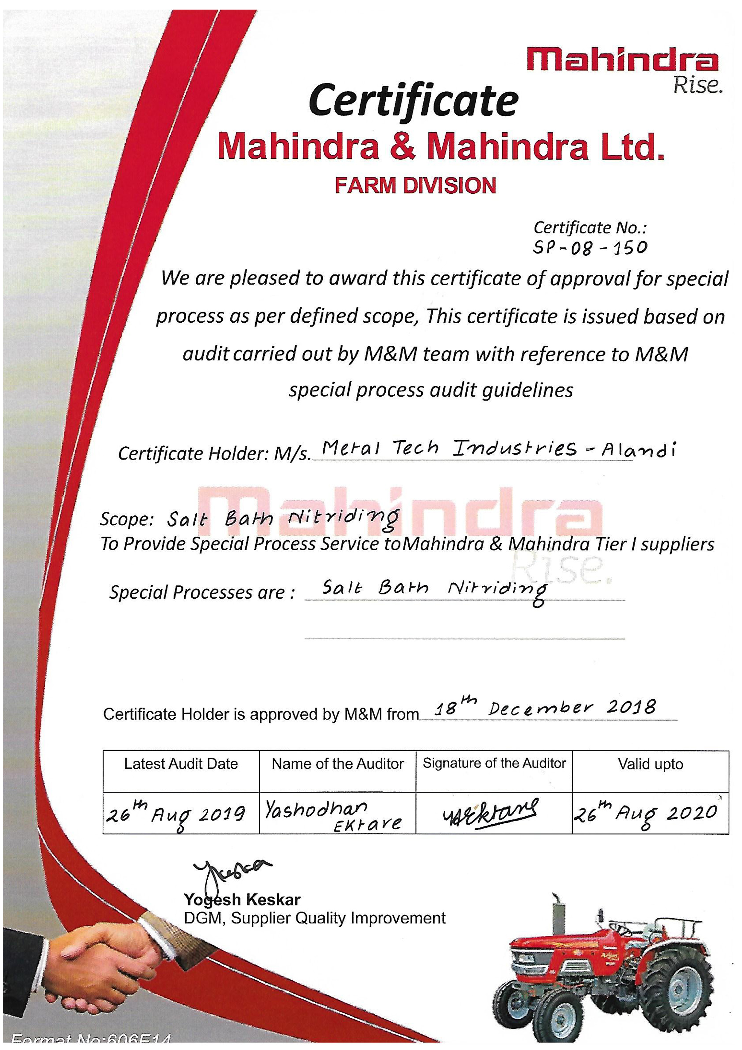 Metal Tech Industries began in 1999, especially in the field of Hard Chrome Plating. Latter on it introduced various other processes viz Forging, Machining, Liquid Nitriding (Bath Nitriding),Heat Treatmentand Manufacturing of I.C. Engine Valves. With a motto of par excellence in maintaining the quality, the Tell customers about the products and services that set you apart industry entered in to 21st century by processing the parts of established engineering brands. The strength of company comprises of highly qualified professionals who follows well documented systems and procedures and delivered the best quality products to the customer. With help of this the industry earned ISO 9001 : 2015 certification by TUV South Asia. Metal Tech Industries is committed for giving the customer, "True Value for Money''.