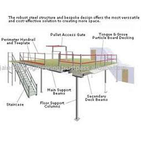 Slotted angle mezzanine floors are an ideal solution for increasing the floor space in offices and industries especially in metros where space is always a restricted resource. Slotted angle mezzanine floors can help in expanding your production capacity & improving operating efficiency at your work place by creating additional office space or expanding your working area. Adding a mezzanine floor in your existing area can increase your storage capacity thereby cutting down your operational cost. Installation of a slotted angle mezzanine floor is easy, quick and of low cost. Moreover these mezzanine floors can be dismantled & shifted whenever and wherever required as there is no permanent welding or grouting.