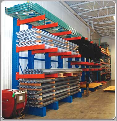 Cantilever Racking is formed using heavy duty structural uprights and heavy duty arms. It is normally used for storage of long loads. Cantilever Racks are great to organize a warehouse, lumber yard or manufacturing facility. So often, companies put bulk items like Pipes, Tubes, Aluminum sheets, flake board, Steel Sheets, etc in piles on the floor - leaving it to the warehouse personnel to constantly sort unrelated heavy and bulky items. With cantilever racks, each type of product can be segregated by commodity and size. .