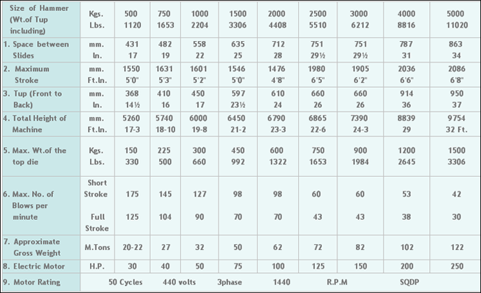 FORGING DROP HAMMERS / BELT DROP HAMMERS