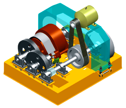 Heavy duty head assembly fabricated from rolled steel sections is mounted on top of the columns. The drive is through v-belts from high torque A.C. Electric motor via flywheel and reduction gears to the lifter-shaft. Friction lifting system is fitted to lifter shaft which runs on double ball bearings and one central phosphorus bronze bearing which also serves as support to lifter shaft. The friction lifter consists of constantly rotating drum and break lined steel band. This band is anchored at one end to stud in lifter drum and other end is carried by camshaft running through lifter drum which actuated by lever. The lever is operated with the help of pulling cord tied to lever at one end goes to operating point by passing through capstan bush attached to lifter shaft. When the cord is pulling it tightens on to the rotating capstan bush which operate the lever resulting in tightening of brake around the brake drum with the help of cam shaft. At this stage lifter drum is rotated and to tup is lifted with the help of nylon belt provided. On release of cord the spring loaded arrangement help free fall of tup by disengaging friction band immediately from the friction drum. The spring loaded buffer work as a stopper for lifting drum is its rest position. Positive water cooling arrangement is provided to the friction drum to prevent excessive heating.