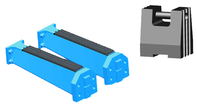Cast steel columns duly-annealed and machined are very stiff and robust in construction to ensure longer stability. These are positioned by a large spigot on underside of each foot which fits into a machined recess in the anvil block. The columns are locked with the help of tapered wedges of alloy steel to ensure firm alignment of columns which helps in accurate guiding of tup (made out of EN-9 cast steel.) the clearance between the tup and guide ways attached to columns is maintained with the help of tapered wedge which brings the columns inward and drawback bolt provided pushes the columns outwards. Synthetic rubber mat is provided on anvil block on which the columns rest. It dampens the induced shock vibrations which increase the life of the tup and also ensures smooth working of the machine for longer period.