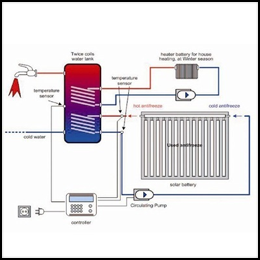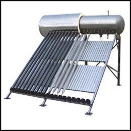 This type of Solar Water Heating System used when the original cold water (from the source) contains chemical contents like calcium or magnesium salts and is therefore hard water.Thermal fluid (Distilled water) is filled thro make-up tank to the outer tank shell. In turn, this fluid gets circulated thro the solar fins and tubes and goes back into the top of the outer tank. This fluid acts as a heat transfer media and prevents clogging of the copper tubes due to chemical contents in the original water source.The inner tank gets filled with cold water from the original cold water source. Since the inner tank is immersed within the outer tank, the heat gets transferred to the inner tank through the conducted and convection method and the water in the inner tank gets heated up and available for hot water utility.