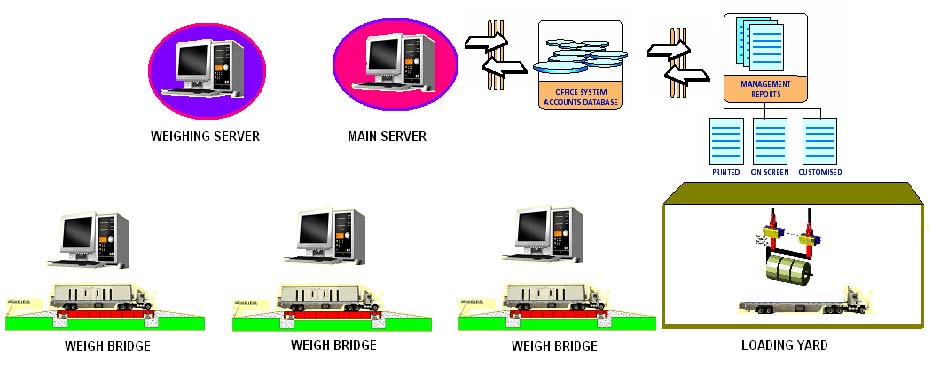 All Weighing systems in a plant can be integrated in a single network to the Weigh server. This server communicates with SAP. MIS is simplified.
