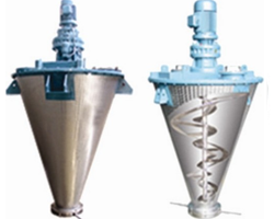 A vertical mixer with screw type mixing element performing planetary motion. It finds extensive application in rapid mixing with low power consumption. It is easy to unload material after processing. With proper additional features can also be used as an effective drier.
