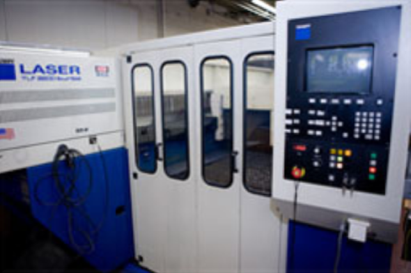 Our CNC Trumpf laser-cutting department provides a large range of capabilities, ensuring the needs of our customers are met with quality and competitive costs. Laser cutting is effective for parts with contours, low productions quantities, and smooth edges. We utilize our high-speed CNC punches in combination with our lasers to increase production efficiency. Parts with many holes are punched first, and then the odd hole sizes and contoured edges are laser cut. The real advantage of a punch/laser combination is a reduction to the cost of parts. Also, with Trumpf Tech center only 45 minutes away, we have all their training and technical support at our door-step. We invest in the latest technology to ensure we maintain a competitive edge on cost, quality, and lead-time.