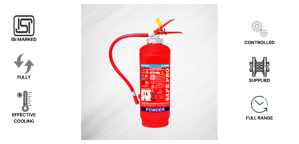 DCP Powder fire extinguishers are ideal for use on Class, B and C Fire Risks. The SAFE PRO Powder fire extinguishers are available in 4kg, 6kg and 9kg standard versions. This model is designed to extinguish ‘B’ and ‘C’ type fires involving material like Petro Chemical products, Paints, Resins, Pigment, Varnish, Gases in the compressed form like Oxygen, Acetylene, LPG, & CNG.